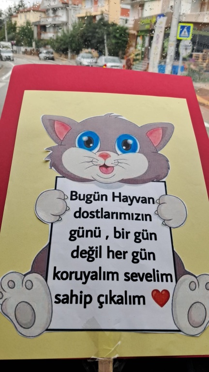 4 Ekim “Hayvanları Koruma Günü” insanların hayvanlara karşı sevgi ve şefkat duygularını uyandırarak, onların korunmasını sağlamak amacıyla tüm dünyada kutlanmaya başlanmıştır. Bu kapsamda okulumuz 1.sınıf öğrencileri hayvan barınağını ziyaret ederek mama bıraktılar.